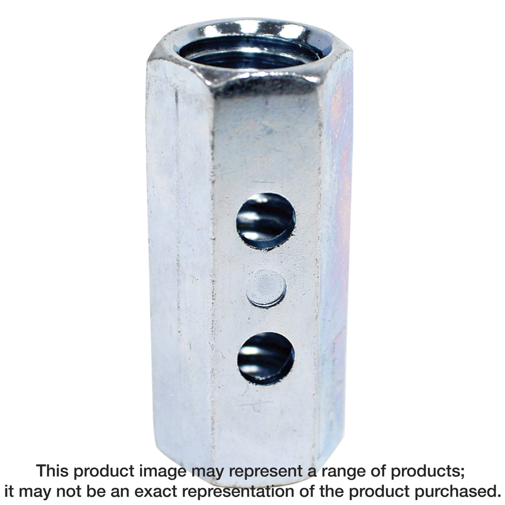 Engineered for precision and ease of use, the CNW 1/2 in. Coupler Nut from Simpson Strong-Tie is an essential component for joining non-hot-dip galvanized all-thread rods. Its innovative design features a Witness® hole, allowing users to tighten the rods until their visibility confirms proper engagement, which enhances both safety and stability in applications. The positive stop feature further ensures that the threads engage correctly, reducing the risk of misalignment during installation. With a height of 1-1/4 inches and a diameter tailored for 1/2 inch rods, this coupler nut exemplifies reliability and efficiency in any construction project.