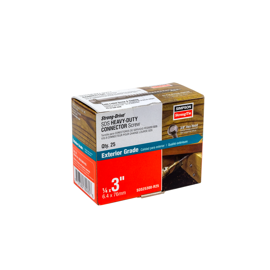 The Simpson Strong-Tie Strong-Drive SDS Heavy-Duty Connector screw is a 1/4 in.-diameter high-strength structural screw ideal for various connector installations as well as wood-to-wood and engineered wood applications. It installs with no predrilling and has been extensively tested in various applications. The SDS is improved with an easy-driving Type-17 point and a corrosion-resistant double-barrier coating.