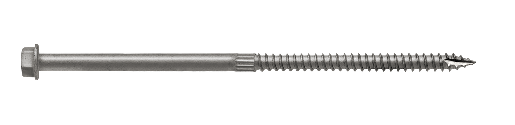 Engineered for superior performance, the Simpson Strong-Tie SDS25600 Strong-Drive® connector screw is a reliable fastener that enhances structural integrity in various applications. This 1/4 inch by 6 inch screw features a corrosion-resistant double-barrier coating, ensuring durability and longevity in demanding environments. The integrated washer and 3/8 inch hex head, easily identifiable with the stamped markings, facilitate straightforward installation without the need for predrilling, while the Type-17 point significantly reduces wood splitting. Additionally, the serrated threads provide an exceptional grip, making these screws an ideal choice for both professional and DIY projects.