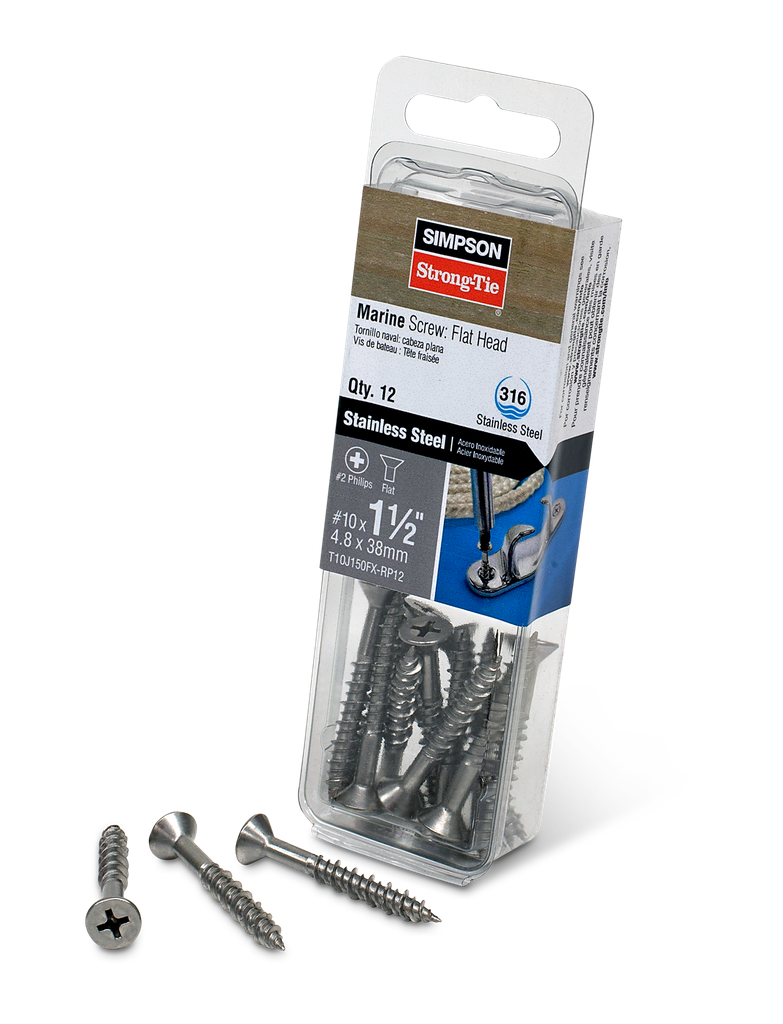 Simpson Strong-Tie provides a broad range of fasteners for boat building and marine trade applications. The Marine screw is designed to fasten securely in fiberglass, plywood and wood-substitute materials for applications that require the ultimate in corrosion protection. This fastener is ideal for applying trim, rub rail and molding to fiberglass boat hulls. These stainless-steel marine screws also come in a pan head.