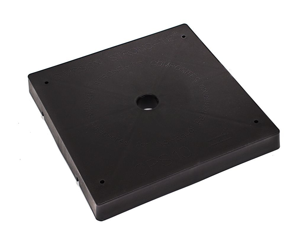 The CPS is a composite-plastic standoff base designed for use both indoors and outdoors. The CPS attaches to the bottom of the solid wood column and to concrete with threaded rod and epoxy. The CPS series is load rated and available in shapes to match a variety of column sizes.