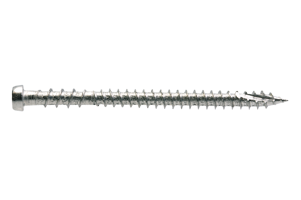 The Type 305 stainless-steel Deck-Drive DCU Composite screw provides corrosion resistance for all types of composite and PVC decking, and is especially suited for applications in environments with chlorides. The DCU penetrates composite decking with a Type-17 point and is engineered with inverted upper threads that clear excess material to ensure a clean, secure installation. Also available with color-matching painted heads to blend with popular manufacturers’ decking for a more concealed, professional finish.