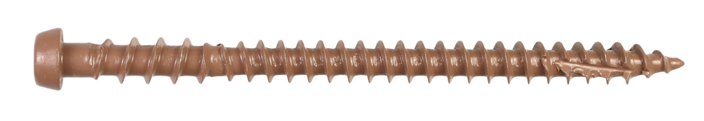 The Quik Guard–coated Deck-Drive DCU Composite screw is designed to resist medium levels of corrosion for all types of composite or PVC decking. The carbon-steel screw penetrates composite decking with a Type-17 point and is engineered with inverted upper threads that clear excess material to ensure a clean, secure installation. The color-matching painted heads blend with popular manufacturers’ decking for a more concealed, professional finish. Available in a wide range of colors.