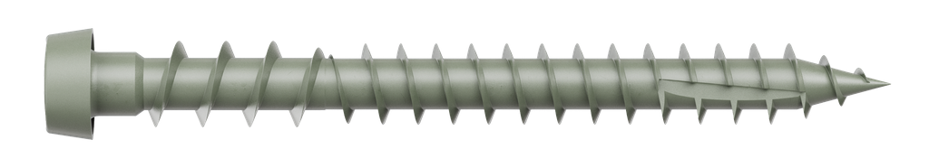 The Quik Guard–coated Deck-Drive DCU Composite screw is designed to resist medium levels of corrosion for all types of composite or PVC decking. The carbon-steel screw penetrates composite decking with a Type-17 point and is engineered with inverted upper threads that clear excess material to ensure a clean, secure installation. The color-matching painted heads blend with popular manufacturers’ decking for a more concealed, professional finish. Available in a wide range of colors.