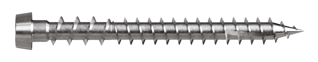 The Type 316 stainless-steel Deck-Drive DCU Composite screw provides severe-level corrosion resistance for all types of composite and PVC decking, and is especially suited for applications in environments with chlorides. The DCU penetrates composite decking with a Type-17 point and is engineered with inverted upper threads that clear excess material to ensure a clean, secure installation. The color-matching painted heads blend with popular manufacturers’ decking for a more concealed, professional finish.