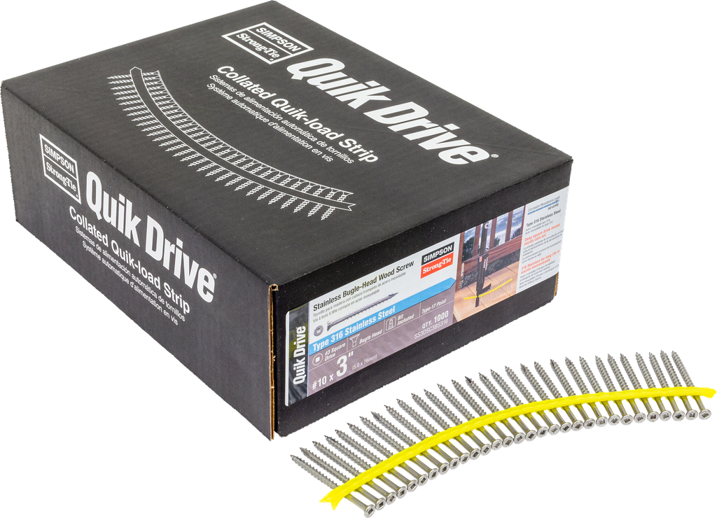 Simpson Strong-Tie offers a wide range of fasteners focused on the needs of the professional builder. That means we focus on features that allow our products to install easier and perform better. We also test them for quality and performance because we know our reputation, and yours, depends on it. Use this screw for wood decking to wood applications. Bugle head provides flush countersinking.