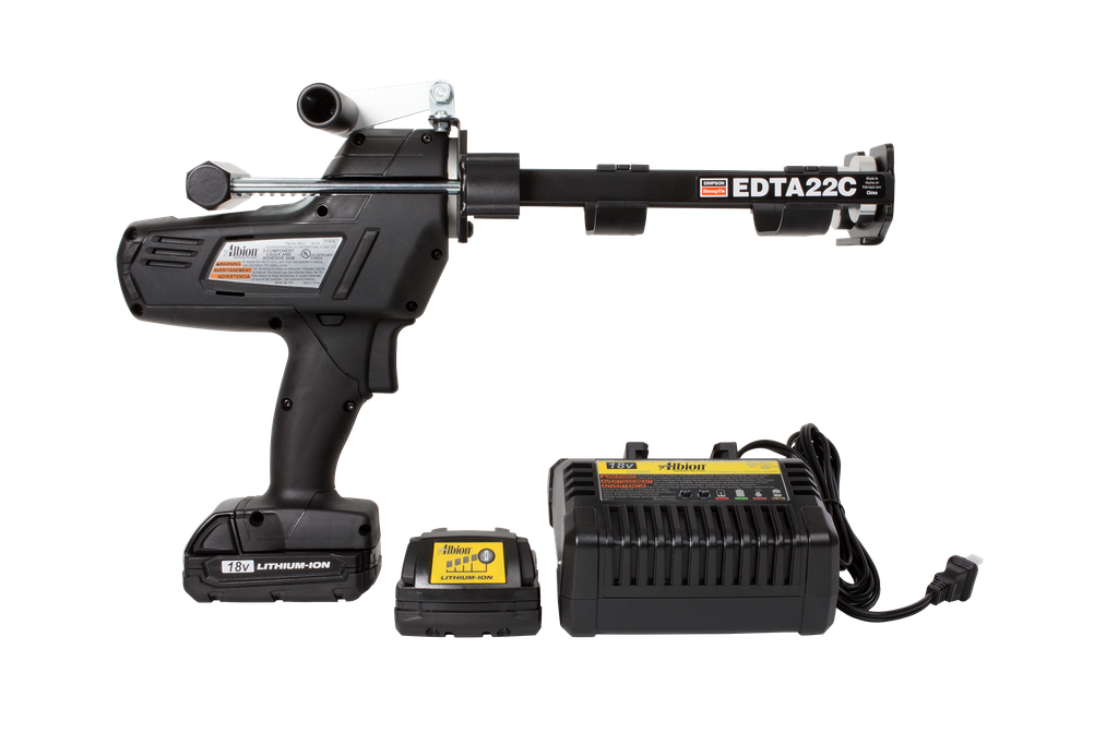 Simpson Strong-Tie® adhesive dispensing tools are designed to provide accurate, controlled application of adhesives in a variety of settings. The battery-powered EDTA22CKT offers trouble-free power dispensing of 22 oz., 1:1-ratio, dual-cartridge epoxy adhesives without the need for a hose or compressor. This heavy-duty tool features dosage and rate control for maximum efficiency on the job. The EDTA22CKT can also be easily converted to dispense 16.5 oz., 2:1-ratio, dual-cartridge adhesives (conversion parts included).