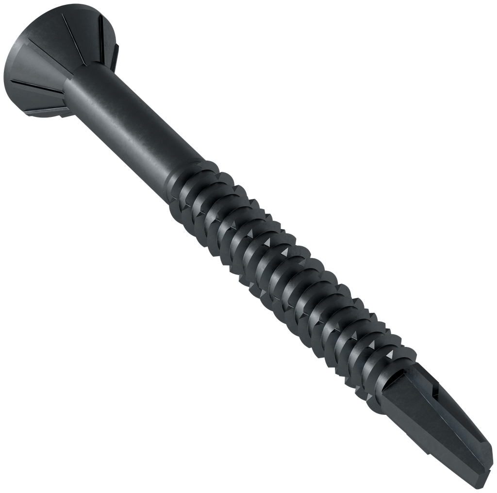 Engineered for versatile applications, the Strong-Drive® TB WOOD-TO-STEEL screw from Simpson Strong-Tie offers a reliable fastening solution specifically designed for wood-to-metal connections. Featuring a #4 drill point with wings that enhances penetration, this screw simplifies installation while minimizing potential cam-outs due to its T30 6-lobe drive design. The flat head, equipped with nibs for easy countersinking, ensures a clean finish while the black phosphate coating serves to protect against corrosion in dry conditions. With a convenient straight collation and included driver bit, this collated screw set is a practical choice for both professional builders and DIY enthusiasts looking for efficiency and strength in their projects.