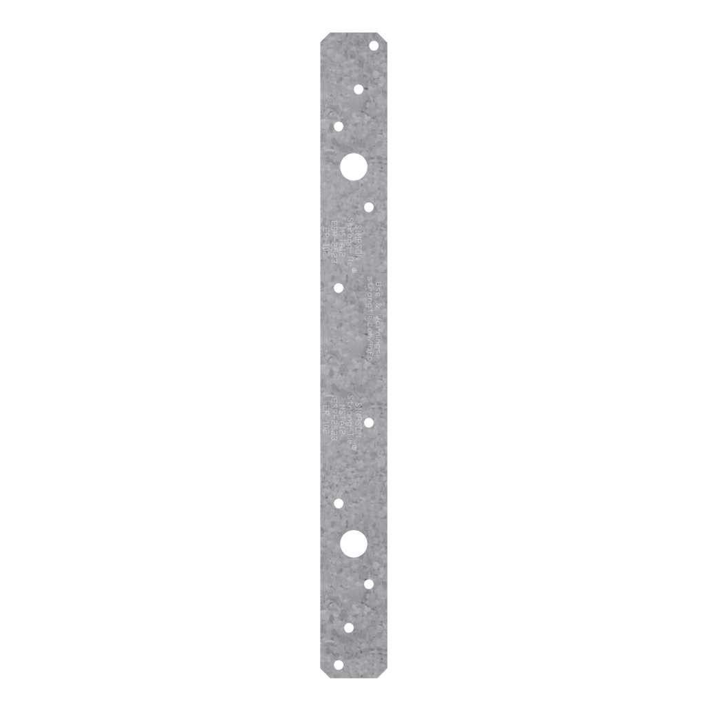 Engineered for strength and reliability, the MSTA 12-inch medium strap tie from Simpson Strong-Tie is an essential component for floor-to-floor clear span applications. Constructed from durable 18-gauge galvanized steel, this strap not only provides robust support but is also specially treated to resist corrosion, ensuring longevity even in challenging environments. Designed for use at the edges of 2x members, its load ratings have been enhanced to accommodate increased wind and seismic forces, making it a superior choice compared to standard field-fabricated straps. With the added assurance of appropriate thickness and fastener requirements, this medium strap tie offers both structural integrity and peace of mind for your building projects.