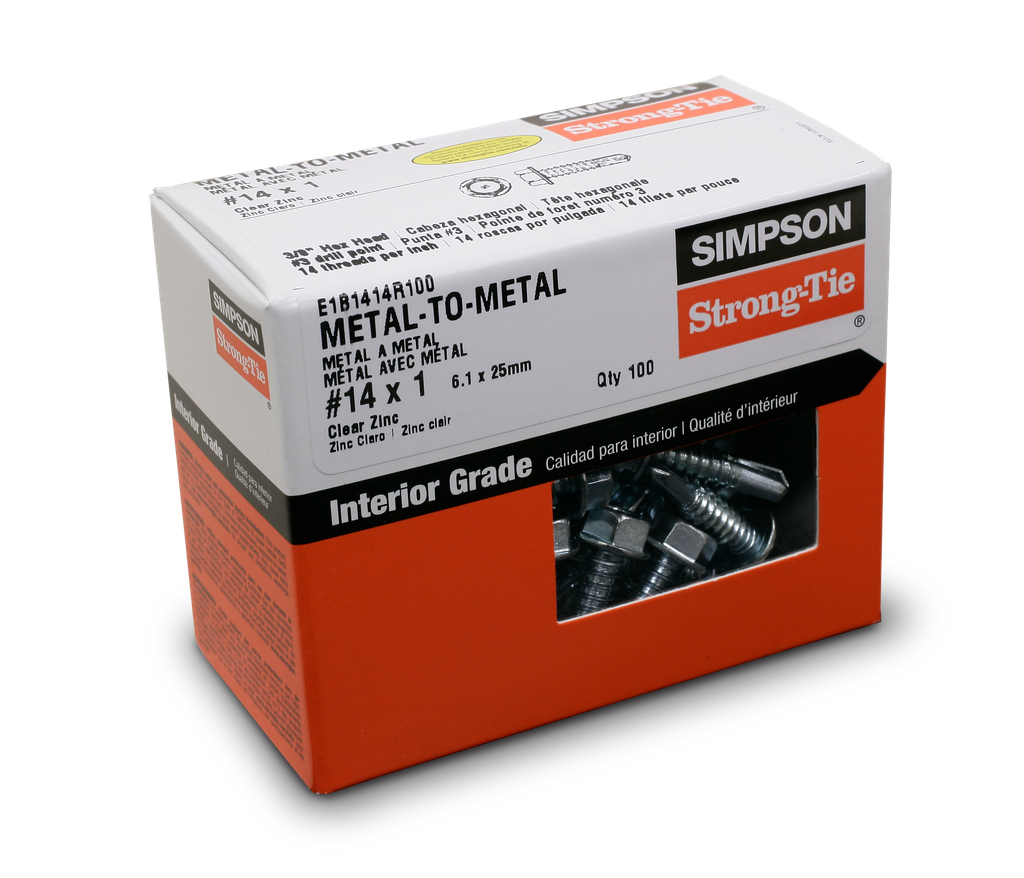 Engineered for efficiency and reliability, these self-drilling E metal screws from Simpson Strong-Tie are essential for your interior projects. Featuring a hex-washer head that simplifies installation and ensures secure driving, they come with a convenient 3/8-inch hex drive, along with a driver bit included for immediate use. Designed specifically for dry, interior, and non-corrosive environments, the clear zinc coating meets ASTM F1941 standards, making them suitable for a range of applications, particularly when used with selected Simpson Strong-Tie connectors. Ideal for projects requiring quick assembly and stability, these screws can facilitate drilling through materials up to 0.35 inches thick, ensuring a robust hold in your construction endeavors.