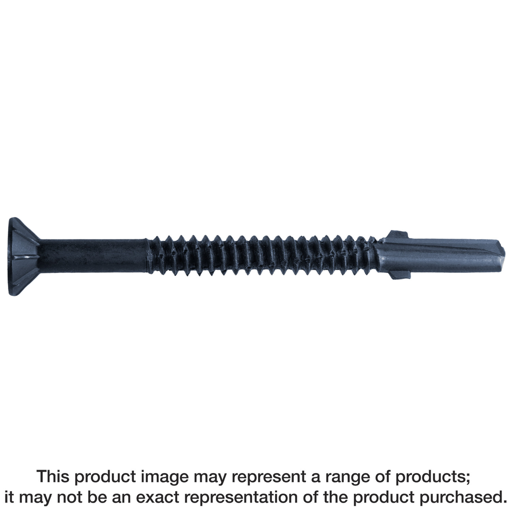 The Simpson Strong-Drive® TF WOOD-TO-STEEL screw is designed to provide a reliable and efficient solution for fastening wood to steel. Measuring 3 inches in length, this #14 screw features a flat head with nibs that allow for easy, flush countersinking, ensuring a smooth finish in your projects. Its specialized #5 drill point, complete with wings, enables quick boring through wood without the need for predrilling, making installation fast and straightforward.