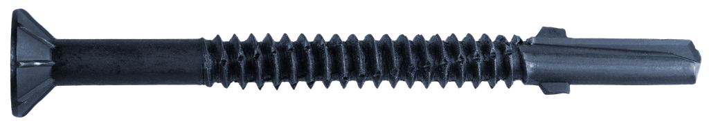 Simpson Strong-Tie® Strong-Drive structural fasteners are engineered and extensively tested to meet the needs of the most demanding wood-to-metal applications. The Strong-Drive TF Wood-to-Steel screw is a 3-in. (75 mm) load-rated structural fastener designed to bore through wood and into steel up to 15/32-in. thick. Its flat head with nibs easily countersinks into the wood and provides excellent pull-through resistance. Its #5 drill point with wings bores through wood before engaging and drilling into the steel member. These fasteners have a straight collation compatible with Quik Drive® auto-feed screw driving systems.
