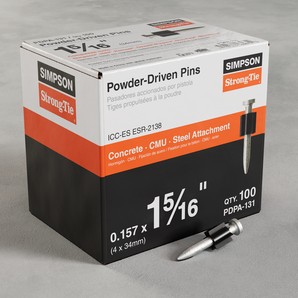Engineered for precision and reliability, the Powder-Actuated Pin from Simpson Strong-Tie is an essential component for construction professionals working with A36 and A572 Grade 50 structural steel. Measuring 1-5/16 inches in length with a 0.157-inch shank diameter, these pins are designed to ensure a secure attachment, meeting critical performance standards. They’re compatible with Simpson Strong-Tie powder-actuated tool systems as well as other widely used tools, making them versatile for various applications. Additionally, these pins are code listed for compliance with ICC-ES, Florida, and LA certifications, ensuring that your projects meet stringent safety regulations. Please note that the product has exposure warnings due to wood dust, in accordance with California regulations.