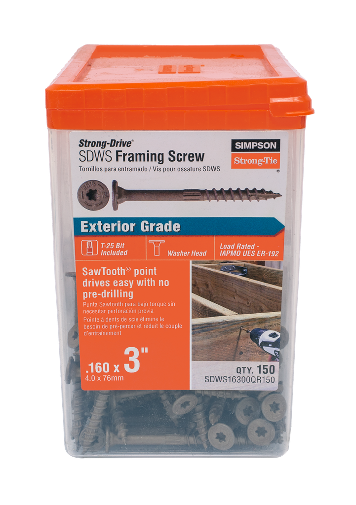 Engineered for efficiency and reliability, the Simpson Strong-Drive® SDWS™ framing screw stands out with its innovative SawTooth® Type-17 tip, which ensures quick starts without the need for predrilling. This framing screw not only includes a driver bit for added convenience but also features a six-lobe drive design that minimizes driver-bit cam-outs, making installations smoother and enhancing the longevity of the bit. The large, 0.450-inch diameter head, coupled with underhead box-nibs, ensures a secure fit and facilitates easy countersinking in various structural applications. Furthermore, its Quik Guard® coating offers robust protection suitable for both indoor and outdoor use, making it an excellent choice for a wide range of projects. Keep in mind that exposure to wood dust is a potential risk, so proper precautions should be observed during use.