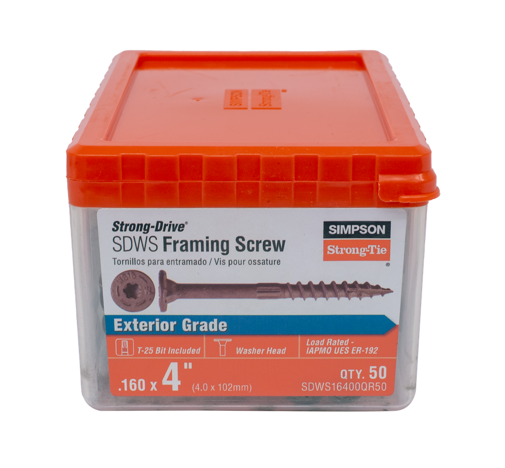 Engineered for superior performance in structural applications, the Simpson Strong-Drive SDWS FRAMING Screw features a large head with underhead box-nibs that ensure increased bearing capacity, allowing for effective and clean countersinking. The innovative SawTooth Type-17 tip enables fast starts without the need for predrilling, while the serrated threads are designed to reduce installation torque, making driving easier and more efficient. This screw is coated with Quik Guard, providing reliable protection for both indoor and outdoor use. Additionally, the 6-lobe drive minimizes cam-outs, extending the life of driver bits significantly. For added convenience, a driver bit is included in the package, ensuring you have everything you need for a successful installation.