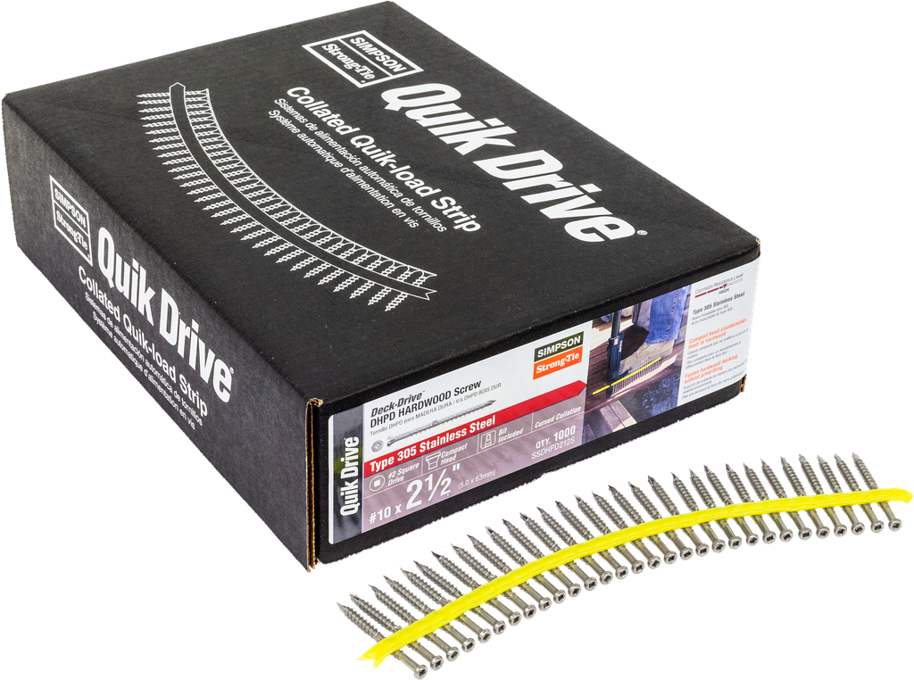 The Deck-Drive DHPD Hardwood screw is specially designed to penetrate the hardest wood products with ease. With its unique paddle-style drill point, it virtually eliminates splitting without predrilling. The wings on the shaft counterbore hard material, allowing the head to countersink easily for a clean, finished look.