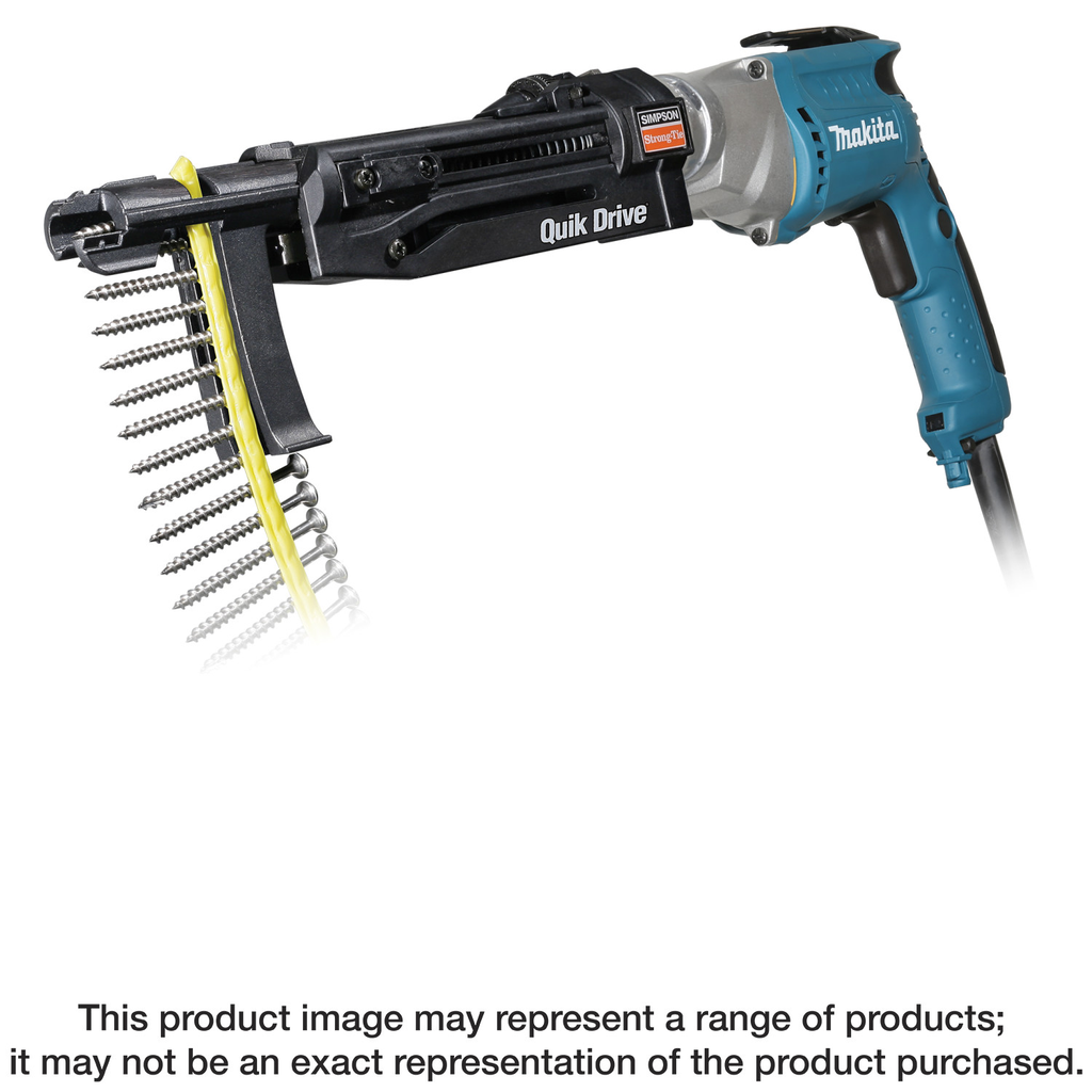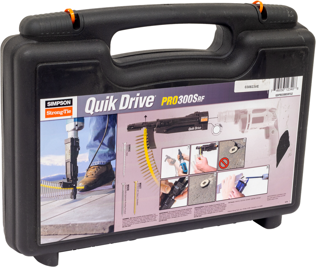 Simpson Strong-Tie® Quik Drive auto-feed screw driving systems turn repetitive fastening into opportunities to increase efficiency and save time. Extensive research goes into the design of each system and screw to understand the intended applications, fastener performance demands and the workflow in which installations take place. This results in professional-quality auto-feed solutions that truly make work easier. The Quik Drive PRO300SRFG2 attachment is designed for securing roofing tiles to wood. A visibility window allows precise visual placement of screws.