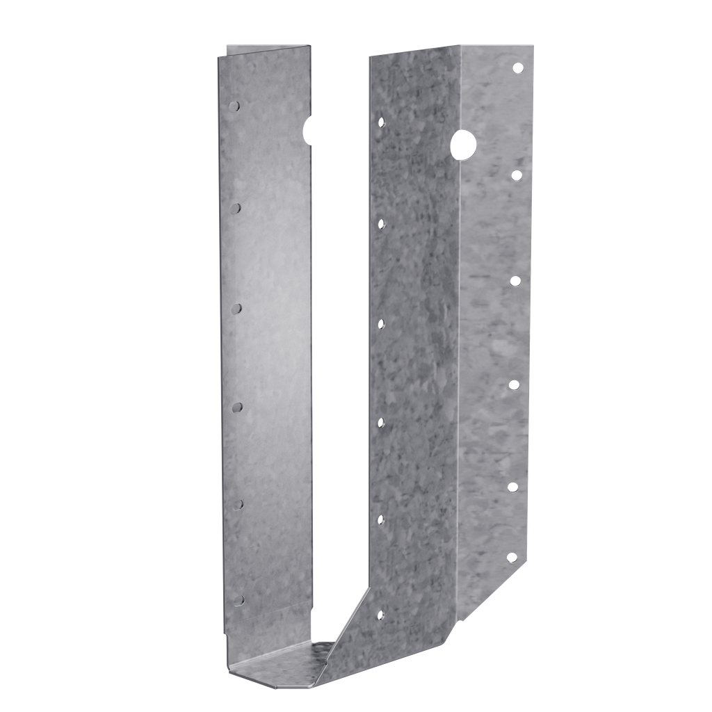 Engineered for robust structural support, this galvanized joist hanger is designed specifically for 2×14 lumber and accommodates a skewed left configuration. Crafted from 16-gauge steel, it ensures exceptional durability, while its G90 galvanized finish provides extra corrosion resistance, making it suitable for various environments. The uniquely angled nail slots facilitate accurate installation, allowing a skew angle between 40° to 50°, whether you are working with square or bevel cuts. With these features, this joist hanger delivers reliable performance for any construction project requiring solid framing support.
