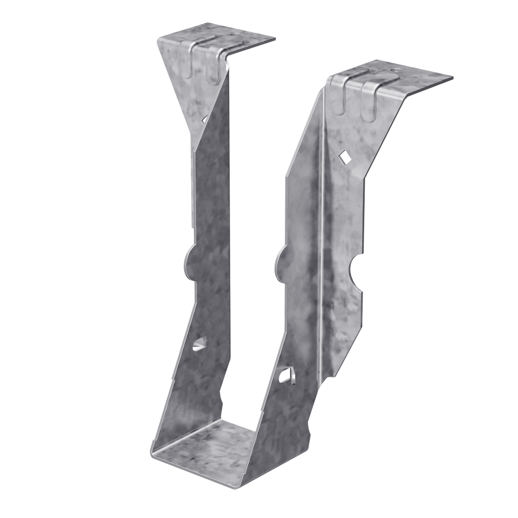 Engineered for strength and ease of use, the PF26Z post frame hanger by Simpson Strong-Tie is an essential component for anyone working with 2×6 framing. Its 18-gauge steel construction ensures robust support, while ZMAX galvanization provides enhanced corrosion resistance, making it ideal for exterior and treated-wood applications. The innovative self-jigging design allows for automatic vertical alignment, streamlining the installation process and saving valuable time. With diamond holes included for temporary fastening, you can achieve precise alignment effortlessly. This connector is specifically crafted to meet demanding structural needs while maintaining a straightforward, reliable installation method.