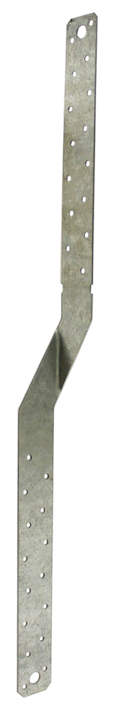 The MTS 20 in. 16-Gauge ZMAX® Galvanized Medium Twist Strap from Simpson Strong-Tie is engineered for a multitude of applications, providing the structural integrity required in both residential and commercial projects. Constructed from durable 16-gauge steel, this strap benefits from ZMAX galvanization, ensuring superior corrosion resistance ideal for outdoor and treated-wood uses. Its versatile design allows for a range of lengths to suit specific needs, and with the option for a reversed bend, it accommodates various installation requirements without compromising on load-bearing capacity. Importantly, these straps can be positioned without needing to wrap over the truss, simplifying the installation process while maintaining robust performance.