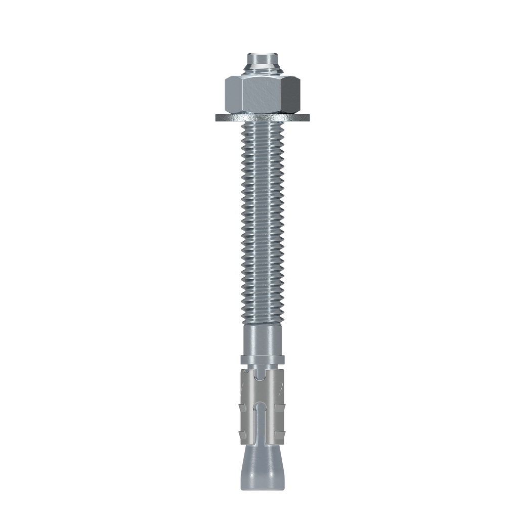 Code listed for cracked and uncracked concrete, and masonry applications, the Simpson Strong-Tie® Strong-Bolt® 2 wedge-type expansion anchor is an optimal choice for high performance even in seismic and high-wind conditions. Dual undercutting embossments on each clip segment enable secondary expansion should a crack form and intersect the anchor location; this feature significantly increases the ability of Strong-Bolt 2 to carry load if the hole expands. The Strong-Bolt 2 is available in zinc-plated carbon steel, mechanically galvanized carbon steel, and Type 304 and Type 316 stainless steel.