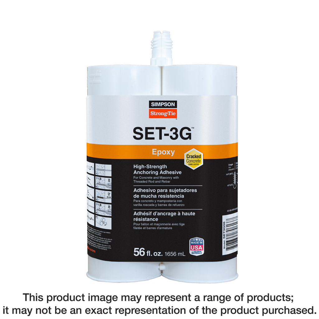 SET-3G® is an epoxy-based anchoring adhesive with high design strength and proven performance. The adhesive is a 1:1 ratio, two-component, anchoring adhesive formulated for anchoring threaded rod and rebar into concrete (cracked and uncracked). This low-odor adhesive is a uniform gray color when mixed properly and has a substrate installation temperature range from 40°F (4°C) to 100°F (38°C). SET-3G installs and performs in a variety of environmental conditions and temperature extremes and is suitable for use in dry concrete, water-saturated concrete, water-filled holes and submerged concrete.