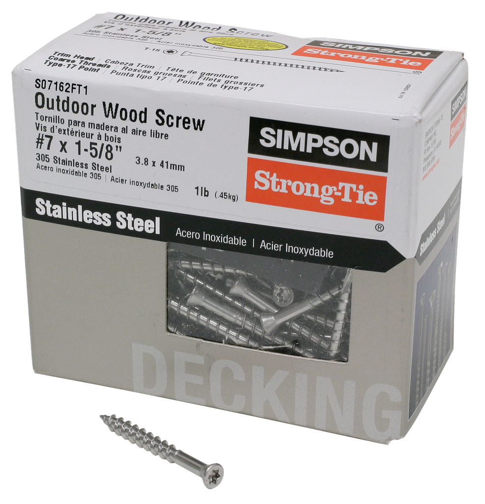 Trim-Head decking screws are available in stainless steel for superior corrosion resistance in marine or high-exposure environments where PVC or composite decks are installed. Trim-Head screws provide a clean finish because of their special head design and are available with painted heads in 13 colors, matched to blend with most major PVC and composite decking manufacturers.