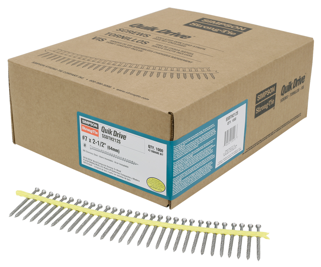 Trim-Head decking screws are available in stainless steel for superior corrosion resistance in marine or high-exposure environments where PVC or composite decks are installed. Trim-Head screws provide a clean finish because of their special head design and are available in 13 colors matched to blend with most major PVC and composite decking manufacturers. Also available in collated square-drive versions with color-matching painted heads for use with Quik Drive® auto-feed screwdriving systems, as well as bulk 6-lobe-drive versions with color-matching painted heads for hand-drive applications.