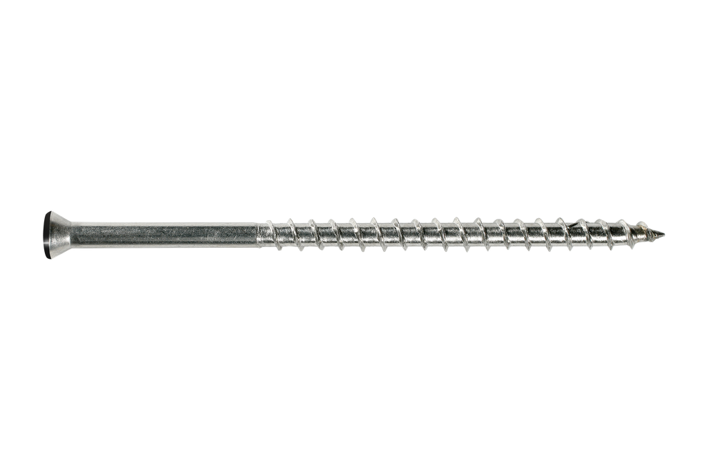 Trim-Head decking screws are available in stainless steel for superior corrosion resistance in marine or high-exposure environments where PVC or composite decks are installed. Trim-Head screws provide a clean finish because of their special head design and are available with painted heads in 13 colors, matched to blend with most major PVC and composite decking manufacturers.