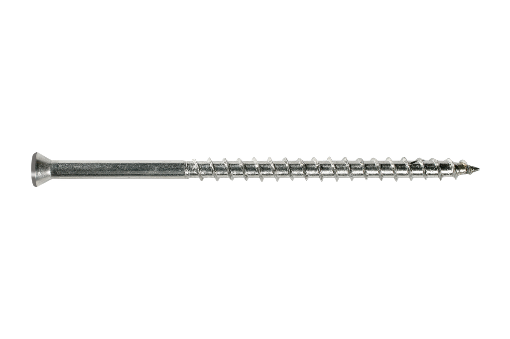 Engineered for exceptional performance, the Trim-Head Screw from Simpson Strong-Tie provides a reliable fastening solution for wood and composite decking materials. With a Type-17 point that ensures quick and easy starts, these screws feature coarse threads on approximately two-thirds of the shank, drawing materials tightly together for a secure fit. The gray finish not only complements the surface aesthetics well but also helps to minimize visibility, while the 6-lobe drive design reduces the risk of bit cam-out, enhancing driving ease and extending bit longevity. Constructed with Type 316 stainless steel, this screw delivers maximum corrosion resistance, making it ideal for outdoor applications. For optimal results, especially near board ends, predrilling is recommended to prevent splitting.