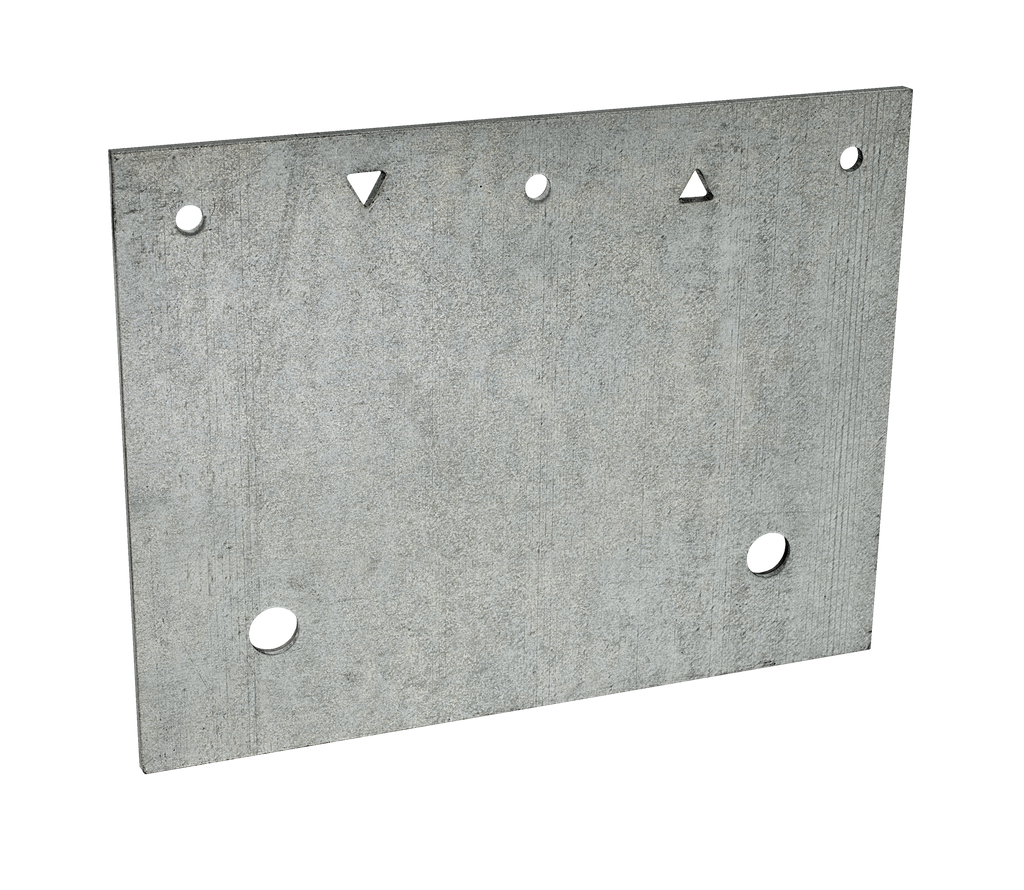 The FRFP® is designed to connect the mudsill to the foundation and provide lateral load resistance. This flat retrofit foundation plate features a design that allows the designer to maintain prescriptive requirements. The FRFP can be used by filling the three round holes, or as an alternative, filling two optional triangle holes to allow designers increased loads and greater spacing.