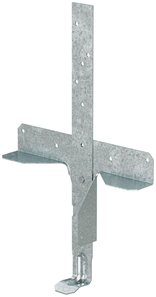 Engineered for robust performance in structural applications, this heavy embedded truss anchor showcases durable construction with a strap made from 16-gauge steel and a truss seat from 18-gauge steel. Designed for versatility, it can be installed straight or bent in the field to accommodate various truss or rafter configurations. With a 7-inch exposed length and a secure embedment of 5-1/16 inches into a poured concrete bond beam or grouted block wall, it provides reliable anchorage that meets load requirements for wind and seismic forces. Additionally, the galvanized (G90) finish offers enhanced corrosion resistance, while the built-in moisture barrier ensures long-lasting performance in challenging environments.
