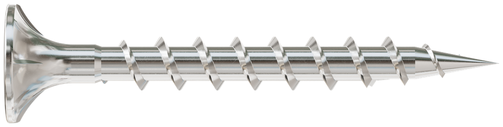 Engineered to provide exceptional performance in challenging environments, the fiber-cement screw from Simpson Strong-Tie features a Type-17 point designed for rapid starts, minimizing the need for pre-drilling. With a wafer head equipped with self-countersinking nibs, these screws enable a smooth and flush finish when blind-fasten fiber-cement siding to wood. Crafted from Type 316 stainless steel, they offer superior corrosion resistance, making them ideal for use in both exterior and marine applications. Each screw measures 1-5/8 inches in length and includes full-length coarse threads for enhanced grip and durability. As a consideration, be aware that this product may expose you to chemicals such as wood dust, which is known to the State of California to cause cancer, and additional details can be found at www.P65Warnings.ca.gov.