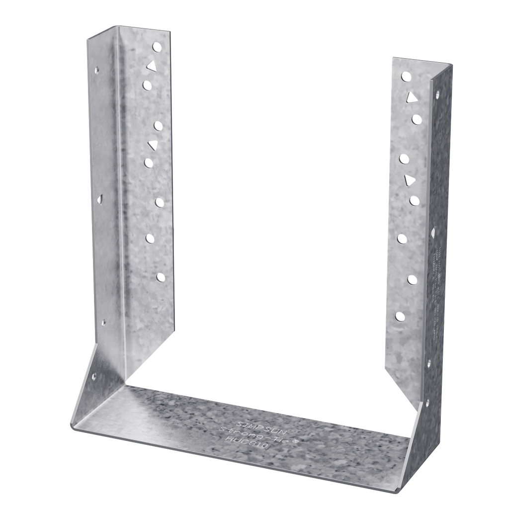 Engineered for strength and durability, the HUC-series concealed-flange joist hanger accommodates nominal joist sizes of 8×10 inches, providing robust support for wood joists when installing them to various materials including wood, masonry, and concrete. Constructed from 14-gauge steel and finished with a galvanized (G90) coating, this hanger offers enhanced corrosion resistance to ensure long-lasting performance in challenging environments. Additionally, the design includes extra optional triangle holes that allow for increased load capacity, making it an excellent choice for a range of building projects. Each hanger has been rigorously tested, load rated, and conforms to applicable codes, delivering peace of mind in your construction endeavors.