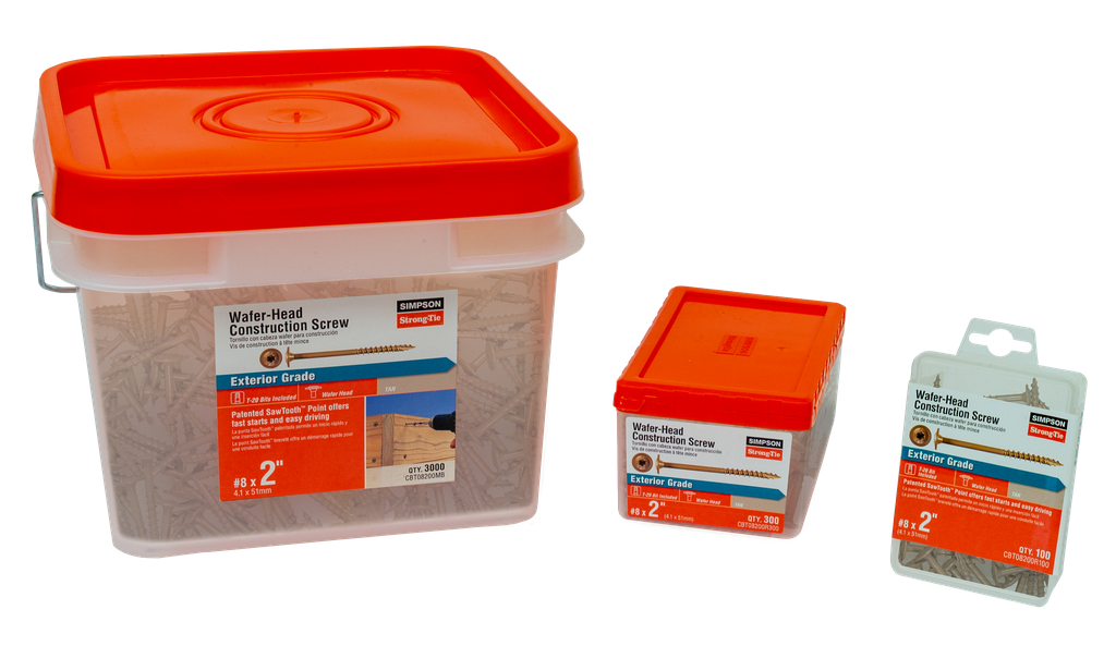 Build every project faster, easier and stronger than ever with the Wafer-Head Construction screw from Simpson Strong-Tie. Featuring a strong pull-through resistance, this versatile fastening solution is ideal for everything from cabinetry to framing to outdoor furniture and other home improvement projects. Its patented SawTooth® point eliminates the need to predrill and saves you time, while the 6-lobe drive recess head makes driving secure and easy. And the Wafer-Head Construction screw’s Quik Guard® coating makes it suitable for both interior and exterior applications.