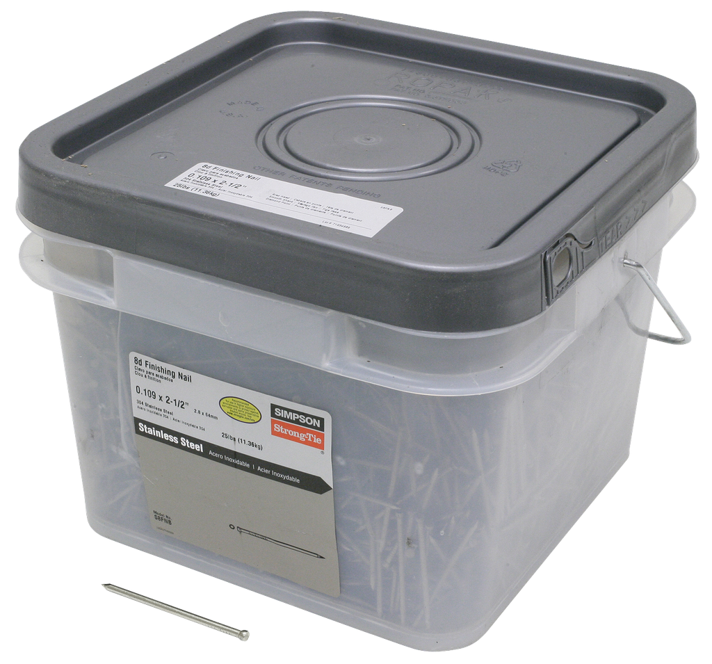 Simpson Strong-Tie offers a wide selection of stainless-steel hand-drive nails. Stainless-steel nails offer the promise of longevity in corrosive environments; a premium upgrade to ensure that fasteners will last as long as the materials they fasten. These stainless-steel finishing nails have a head that is only slightly larger than the shank. These nails can be easily concealed by countersinking below the work surface.