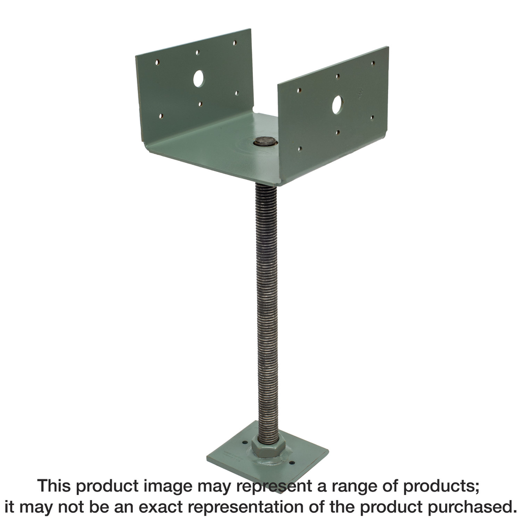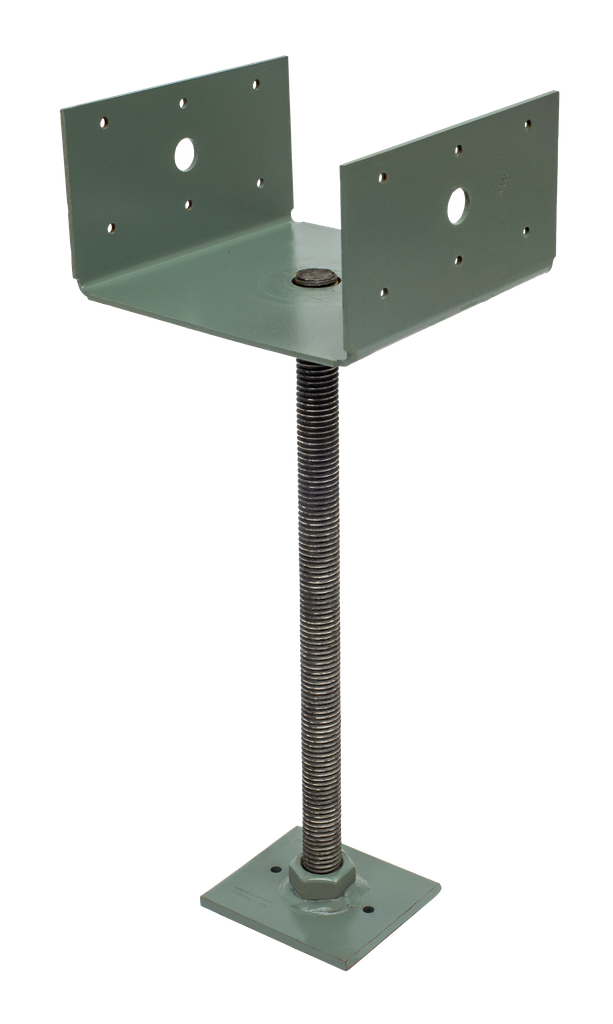 The PPBF™ adjustable porch post base safely supports porch framing through all phases of construction, eliminating the need for temporary vertical support and providing a stronger structure for contractors working on and around the porch roof. The seat adjusts to accommodate varying porch-slab thicknesses from 4 in. to 12 in., providing contractors with one-time installation of the post base and post at the beginning of construction. This adjustability gives contractors the option to set the post base at the correct height before the porch concrete slab is poured. The PPBF fastens to the footing with two Titen Turbo™ concrete screws when framing the porch roof. The height of the post base can be adjusted by threading the seat up or down onto the threaded rod. The PPBF is tested and load rated to support the weight of most framed porches and overhangs before the post base is embedded in concrete. The table also provides load values for the base after it has been embedded in concrete.