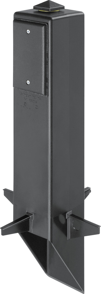 The Gard-N-Post from Arlington Industries is designed specifically for the secure installation of outdoor light fixtures and GFCI devices. This versatile support offers openings on both sides, allowing for back-to-back power connections or a combination of power and low voltage use, which enhances its functionality for various outdoor settings. Crafted from UV-rated plastic in a permanent black finish that resists chipping, it maintains its sleek appearance even under the sun.
