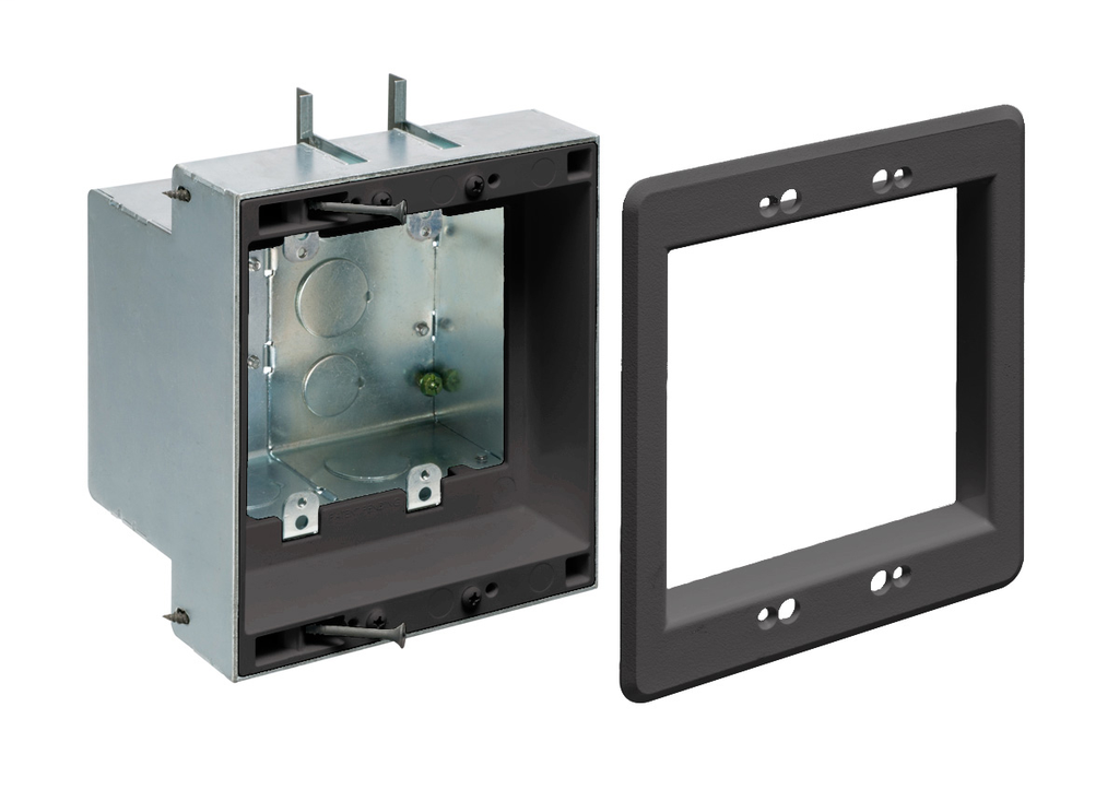This two gang recessed steel TV box from Arlington Industries is designed for both new and existing constructions, providing an efficient solution for integrating your television setup seamlessly. Crafted from durable steel, it features a low voltage divider that ensures your AV connections are neatly maintained and organized. Accompanied by a sleek black trim plate, this unit not only emphasizes a contemporary aesthetic but also accommodates compatibility with various decor styles, including an additional white option. With its cULus listing, this product guarantees safety and reliability, making it a practical choice for any modern entertainment space.