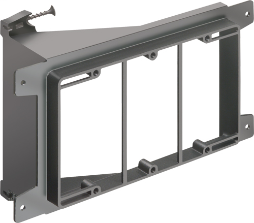 This low voltage mounting bracket from Arlington Industries offers a reliable solution for new construction applications involving wood studs. Constructed from durable plastic, it features a sleek black finish and is designed to accommodate three gang configurations, making it suitable for various wiring needs in residential and commercial settings. A built-in loop allows for secure cable tie-off, ensuring organization and safety in your installations. With UL and CSA listings for quality assurance, this screw-on, non-metallic bracket meets industry standards while providing ease of installation and dependability on the job.
