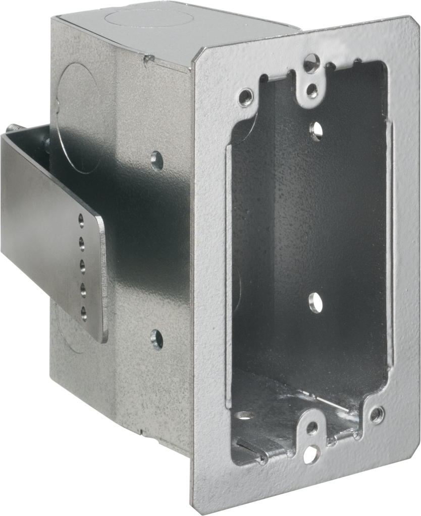 Designed for secure installation within concrete block walls, this steel single gang box by Arlington Industries features 1/2″ and 3/4″ knockouts for versatile wiring options. The innovative spring steel clip ensures the box holds firmly against the wall when screws are tightened, providing added stability during use. With a capacity of 22.0 cubic inches, it accommodates various electrical applications while maintaining a compact footprint. Crafted from durable steel and finished in a sleek silver color, this box is not only functional but also compliant with cULus standards, making it a reliable choice for contractors and DIY enthusiasts alike.