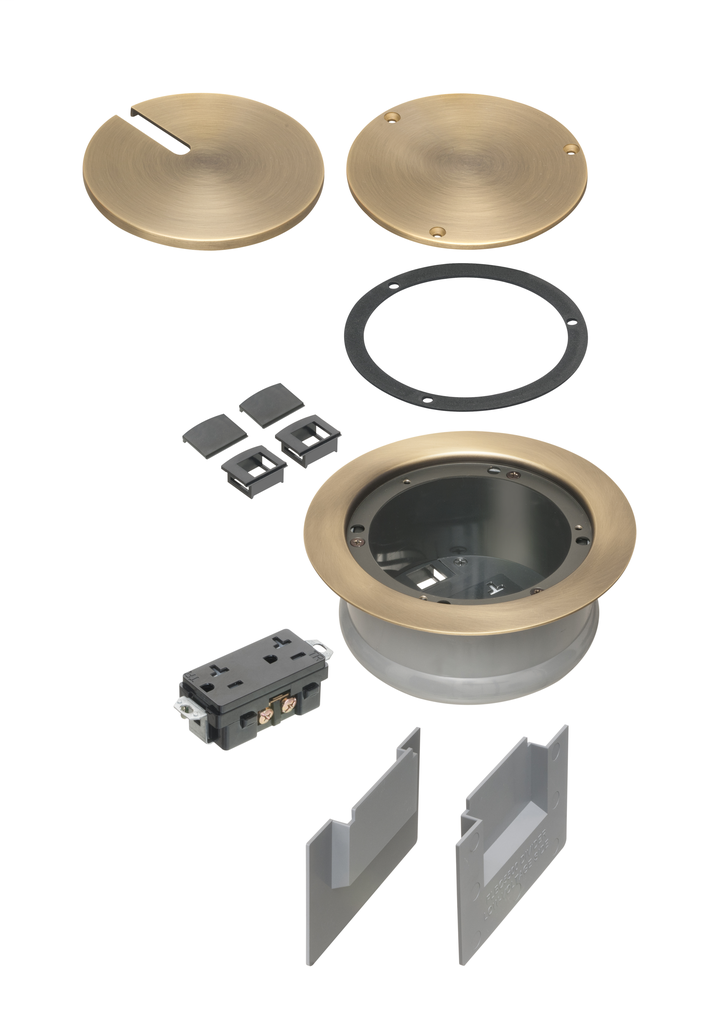 This ultra-thin, antique brass plated flange cover from Arlington Industries is designed specifically for low voltage applications, providing both functionality and an elegant aesthetic. It features two low voltage openings and a flush-to-floor design that ensures a seamless look in any setting. The cover includes a UL Listed, tamper-resistant 20A decorator-style receptacle for safety and reliability, along with various inserts for low voltage keystones and blank applications. Crafted from durable antique bronze plated zinc and steel, this cover not only meets installation standards but also adds a touch of vintage appeal to your decor.