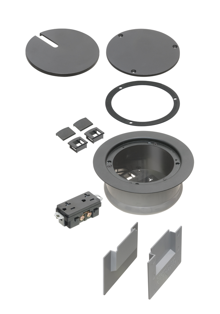 This product from Arlington Industries features a sleek, ultra-thin, black powder-coated flange cover designed for low-profile installation. The set includes a tamper-resistant 20A decorator-style receptacle and various low voltage inserts, allowing for seamless integration into the floor while maintaining functionality. The durable stamped steel and zinc materials ensure long-lasting use, while the in-use slotted plug cover keeps connections protected. With its thoughtful design and robust safety features, this flange cover stands out as a practical solution for modern electrical needs in both residential and commercial settings.