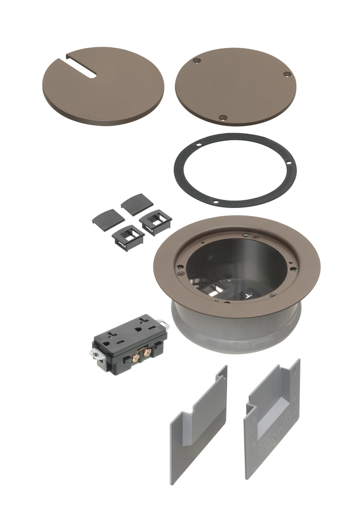 This ultra-thin stamped steel flange cover from Arlington Industries is designed to provide a seamless and aesthetically pleasing solution for both in-use and blank openings in floors. Featuring a durable brown powder-coated finish, it ensures that the cover remains both functional and visually appealing while complementing various decors. The installation includes a UL Listed 20A tamper-resistant decorator-style receptacle, ensuring safety and compliance with current standards. Along with two low voltage keystone holder inserts, additional low voltage blank inserts, and a gasketed blank cover, this versatile product is ideal for managing electrical and low-voltage connections discreetly and efficiently, making it an excellent addition to any residential or commercial space.
