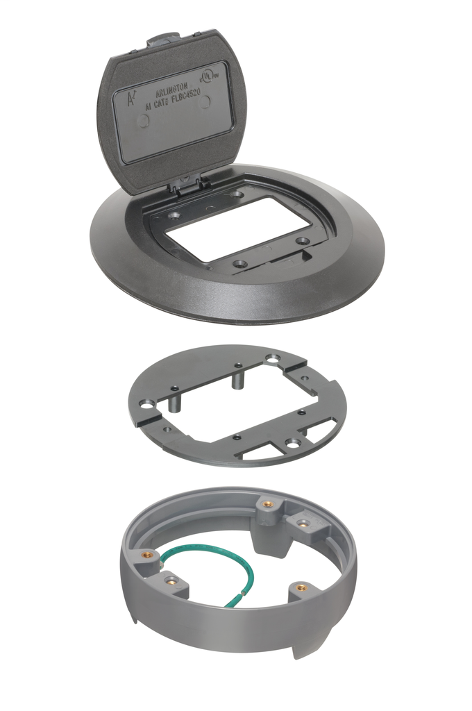 Enhance the functionality of your floorbox installation with the round non-metallic cover kit from Arlington Industries. This versatile black cover is designed specifically for compatibility with the FLBC4500 box, ensuring a seamless fit. Constructed from durable plastic, the kit includes a gasketed cover, a mounting plate, and a leveling ring, making the installation process straightforward and efficient. With its stylish design and practical flip lid, this cover not only protects the electrical connections beneath but also offers an aesthetic finish for new concrete floors.