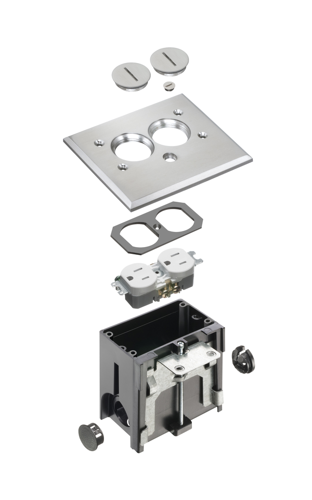 The metallic adjustable floor box from Arlington Industries combines functionality with aesthetic appeal, making it an ideal solution for new floor construction. Featuring a sleek nickel-plated cover, this box is designed with threaded plugs and includes a tamper-resistant duplex receptacle for enhanced safety. Crafted from durable materials, it also comes equipped with an Arlington NM94 connector and an NM900 knockout plug, ensuring a reliable connection for electrical applications. Its adjustable design and rectangular shape make it versatile, allowing for seamless integration into any flooring layout while maintaining a polished look.