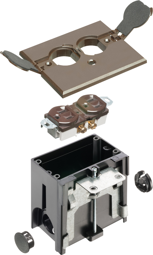 Arlington Industries presents an innovative solution with their non-metallic adjustable floor box in a rich brown color, designed to seamlessly integrate into new floor constructions. This versatile unit features convenient flip lids for easy access and includes a tamper-resistant duplex receptacle, ensuring safety without sacrificing functionality. Enhanced with a cover plate that comes with a gasket, alongside the Arlington NM94 connector and NM900 knockout plug, this floor box provides a reliable and neat option for managing electrical connections in a clean aesthetic. With its durable plastic construction and thoughtful design, it not only meets safety standards but also complements modern interiors.