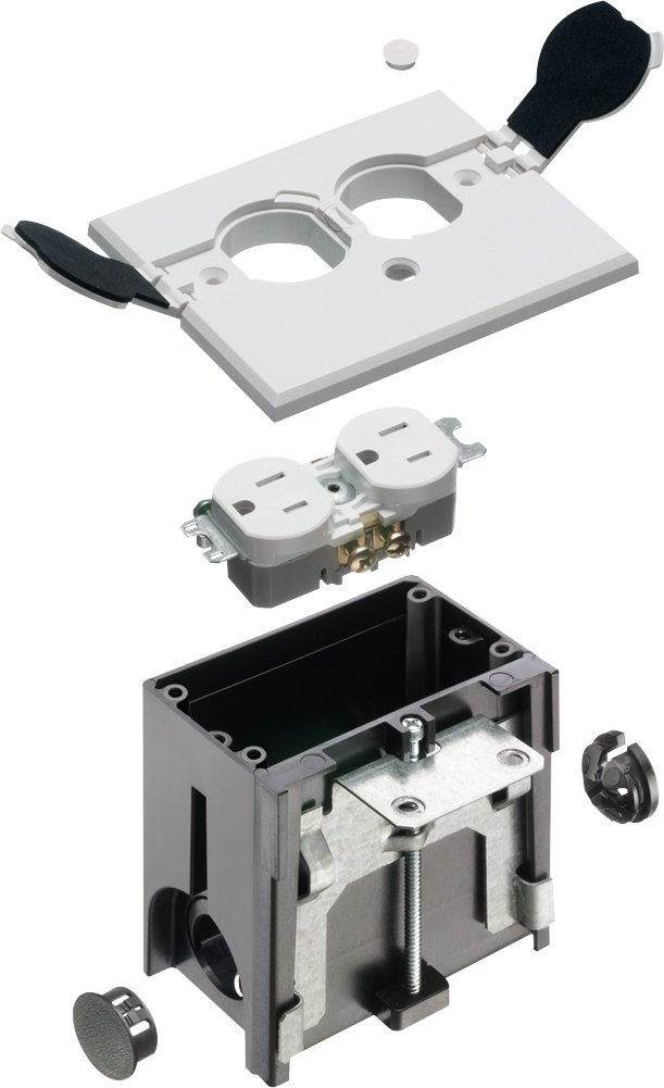 This adjustable non-metallic floor box from Arlington Industries is designed for versatility in new floor construction projects. Featuring a clean white finish and flip lids, it provides an aesthetically pleasing solution for housing a tamper-resistant duplex receptacle, ensuring safety while maintaining a sleek appearance. The inclusion of a cover plate with gasket enhances its sealing capability against dust and moisture, making it suitable for various environments. Designed with durable plastic, this floor box is both lightweight and easy to install, making it an essential component for modern electrical setups.
