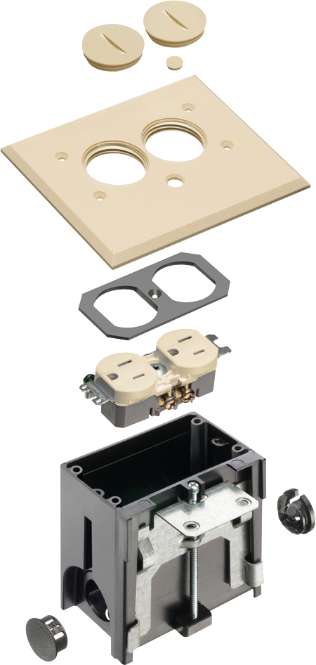 Enhance your electrical installations with the non-metallic adjustable floor box from Arlington Industries, designed specifically for new floor construction. This versatile fixture features a light almond cover and threaded lids, allowing for seamless integration with various decor styles while ensuring durability and protection. Each box includes a tamper-resistant duplex receptacle along with a cover plate that comes complete with a gasket, ensuring optimal sealing and safety. Additionally, it is equipped with both an Arlington NM94 connector and an NM900 knockout plug, making it a practical choice for both residential and commercial applications. With its efficient design and robust materials, this floor box is both functional and reliable for your electrical needs.