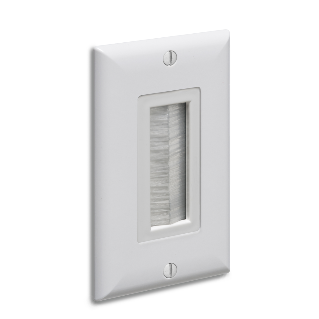 This cable entry device from Arlington Industries features a sleek white non-metallic design, making it an ideal choice for modern installations. With its brush-style cover, it effectively manages cable entry while maintaining a clean and tidy appearance. Included with the device are two #6 screws for easy installation, along with a wall plate to ensure seamless integration into your environment. Designed for use with a single gang setup, this product combines practicality with aesthetic appeal, making it a valuable addition to your wiring solutions.